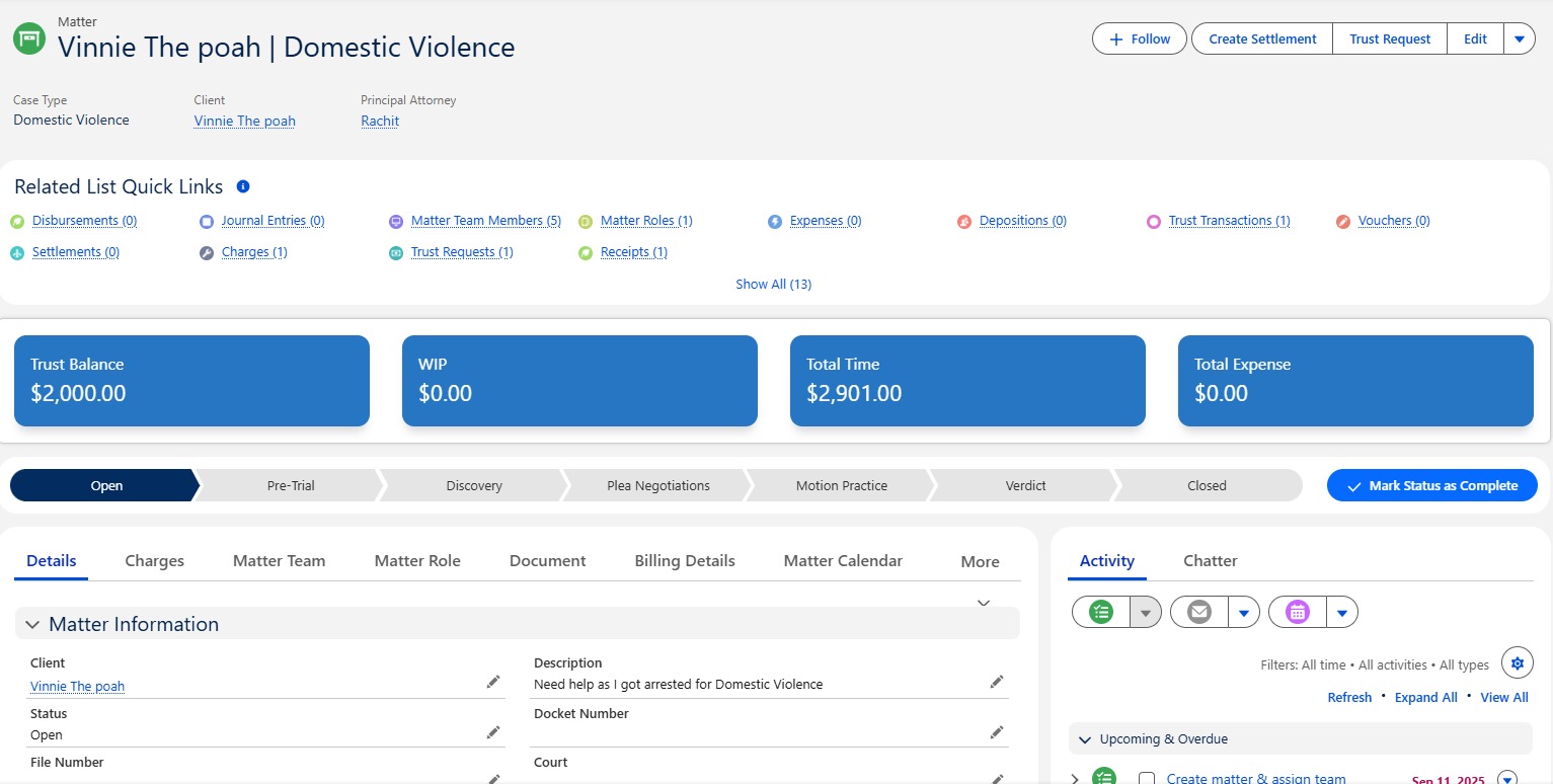 Stay on top of deadlines, tasks, and documents – all organized within each matter for easy access and oversight.
